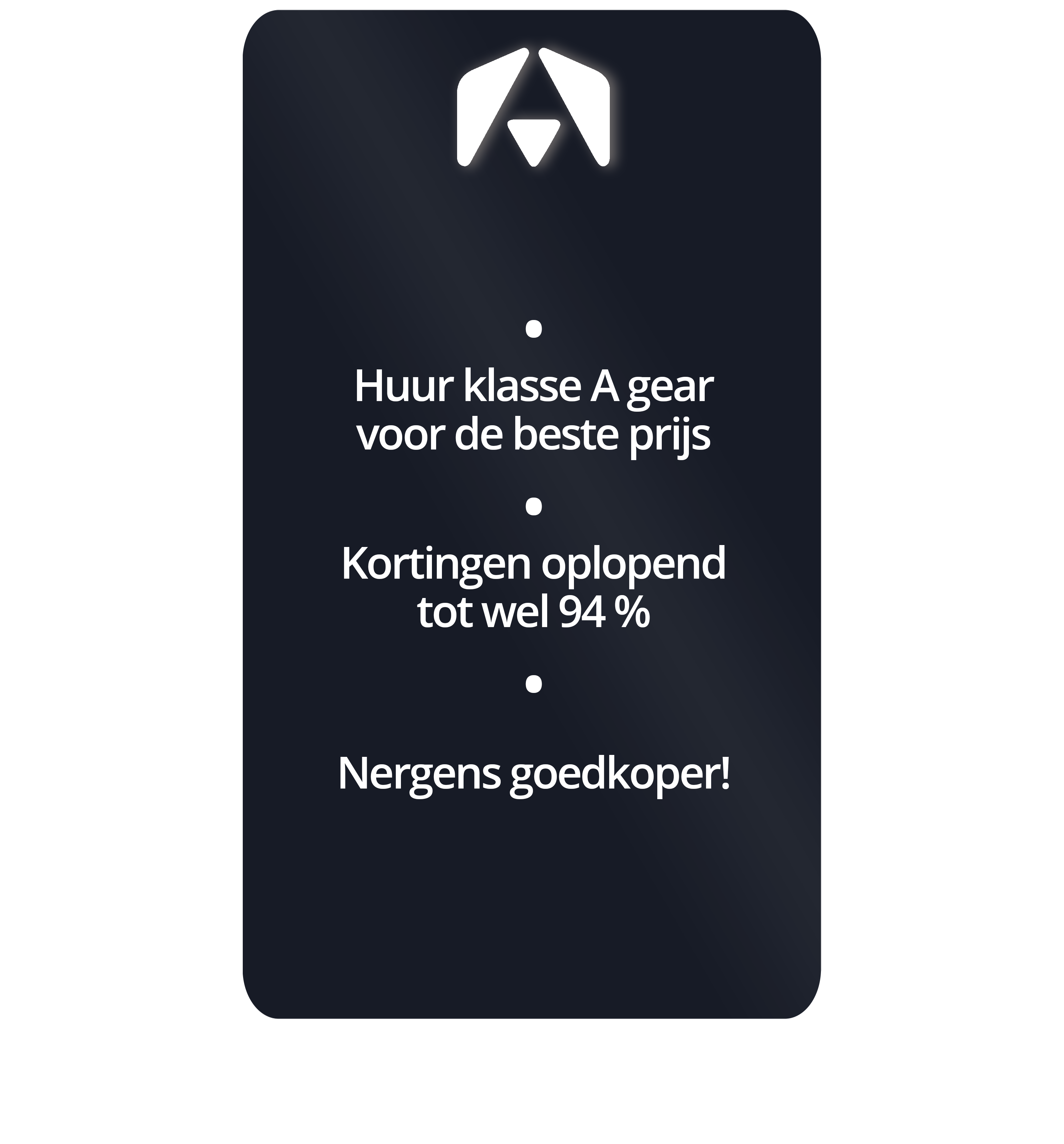 Als je langer dan 1 dag huurt, geldt een staffelkorting die automatisch berekend wordt. Bij 7 dagen huur, betaal je geen 7, maar 3 maal het standaard dagtarief. Bij 180 dagen betaal je 18 maal het dagtarief. Dat is 90 % korting!
