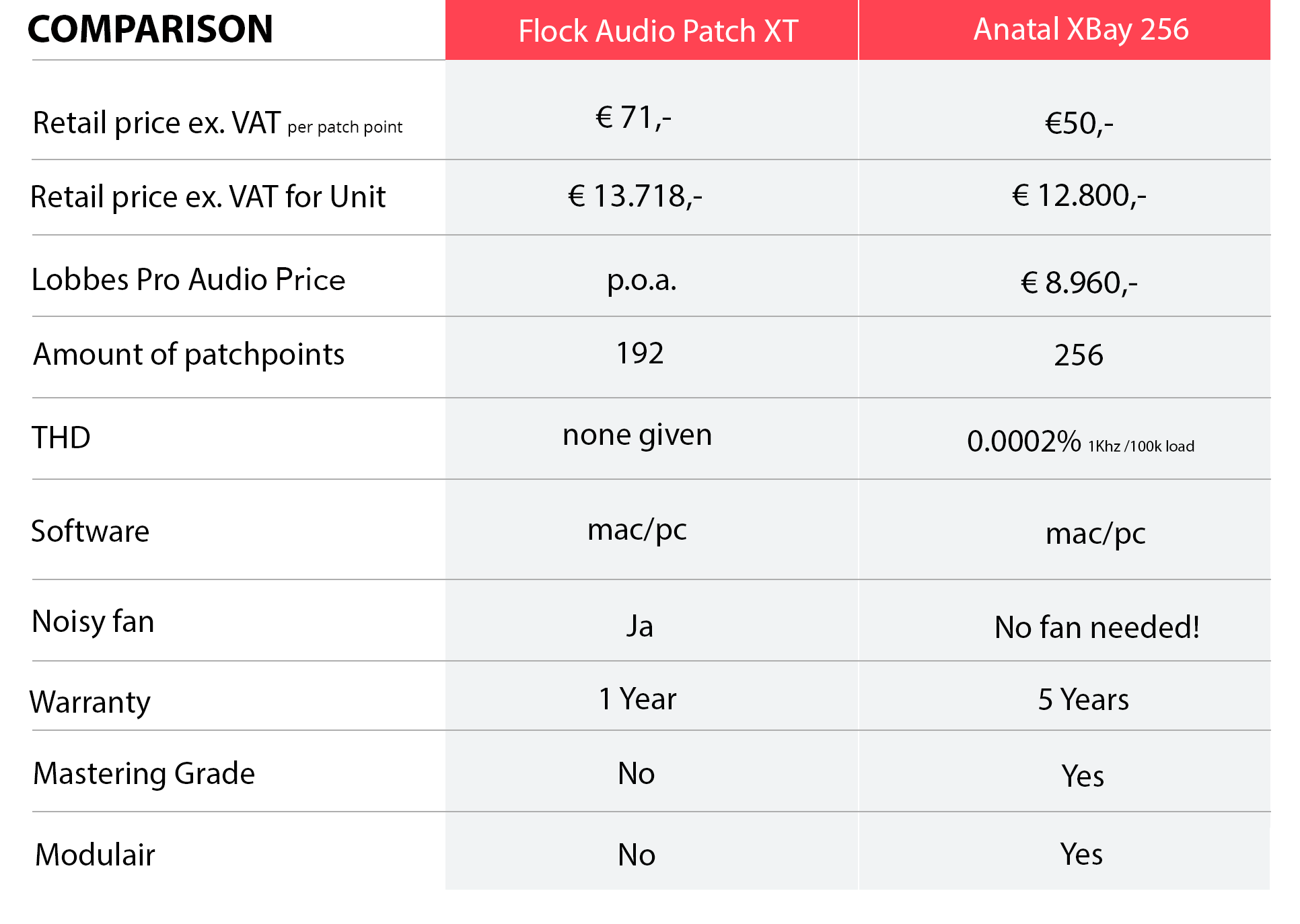 NIEUW! Mastering grade 100% analoge patchbay. Digitaal aan te sturen.