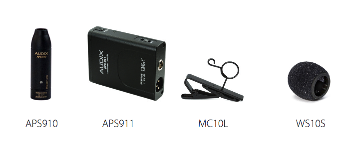 The ADX10, primarily for use with Audix wireless systems, includes a tie-clip, and a 3’ attached cable terminating to a mini-XLRf connector. The ADX10 may also be used as a wired mic. Simply order the APS910 or APS911 phantom power adapter for use with a standard mic cable.