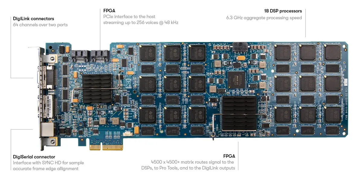 Hardware Pro Tools DSP-kaart, krachtpatser met 18 DSP-cores en twee krachtige FPGA-chips