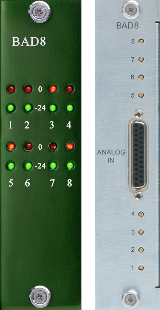 The BAD8, our 8-channel analog-to-digital daughter card for the B80 and B16 MOTHERSHIP is the result of over 25 years of R&D A/D design experience. Following on the overwhelming success of the B2 BOMBER ADC and the BAD4, the BAD8 employs a next-generation analog circuit path and the latest in analog to digital conversion. This is a no-compromise design utilizing all class-A, discrete transistor circuitry and the legendary BX1 transformer coupled input.