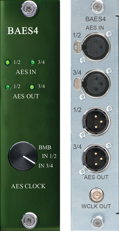 The B80 and B16 MOTHERSHIP daughter card slots can be used for amazing AD/DA conversion, but also for digital IO and clock output.  The BAES4 card features 4 channels of AES/EBU IO and the ability to recover and sync to the incoming AES stream.