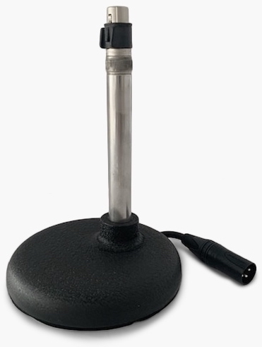 The Coles 4104 Table Stand is designed to hold the Coles 4104 Commentator's Noise Cancelling Ribbon Microphone. The 4104 Table Stand incorporates a wired connection from the mic to an XLR male connector at the stand base.