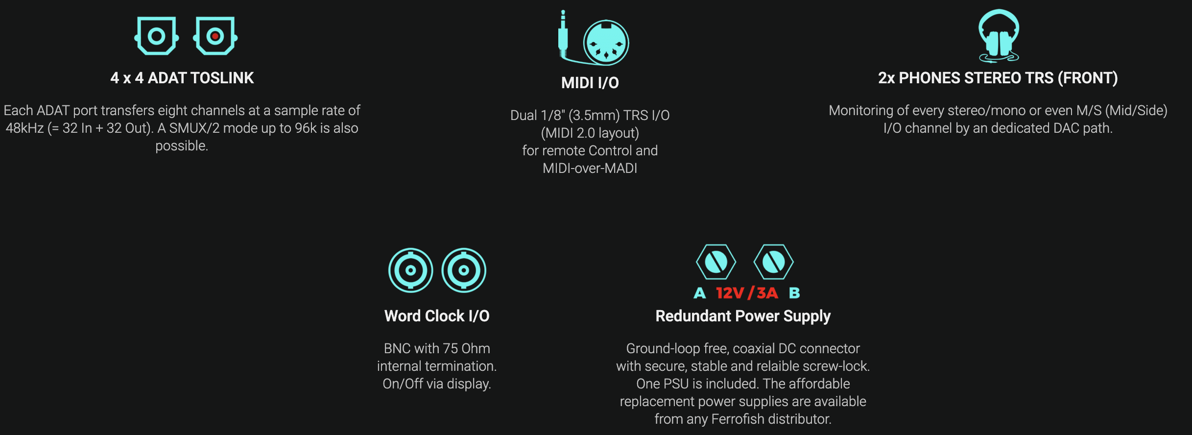 - Redundancy (MADI I/O, Dante I/O, Power Supplies).