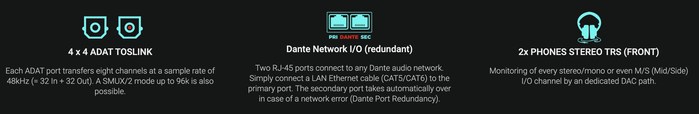32 x 32 AD/DA <> MADI <> ADAT <> Dante Converter