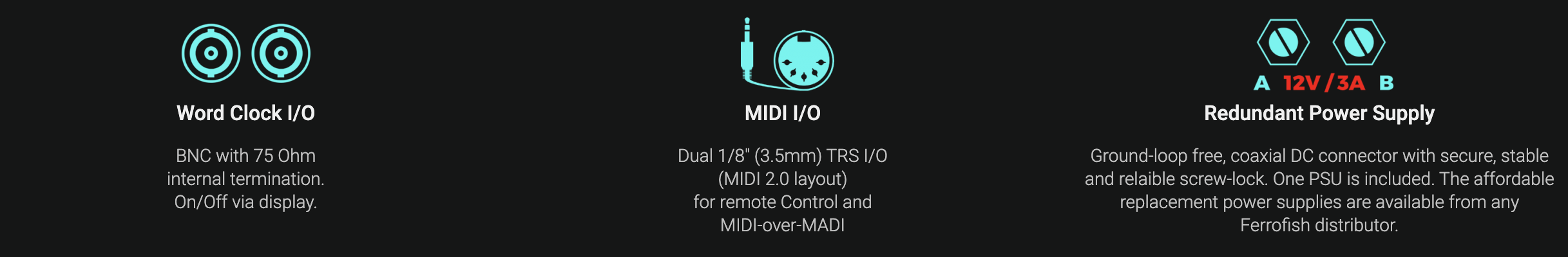 - Redundancy (MADI I/O, Dante I/O, Power Supplies).