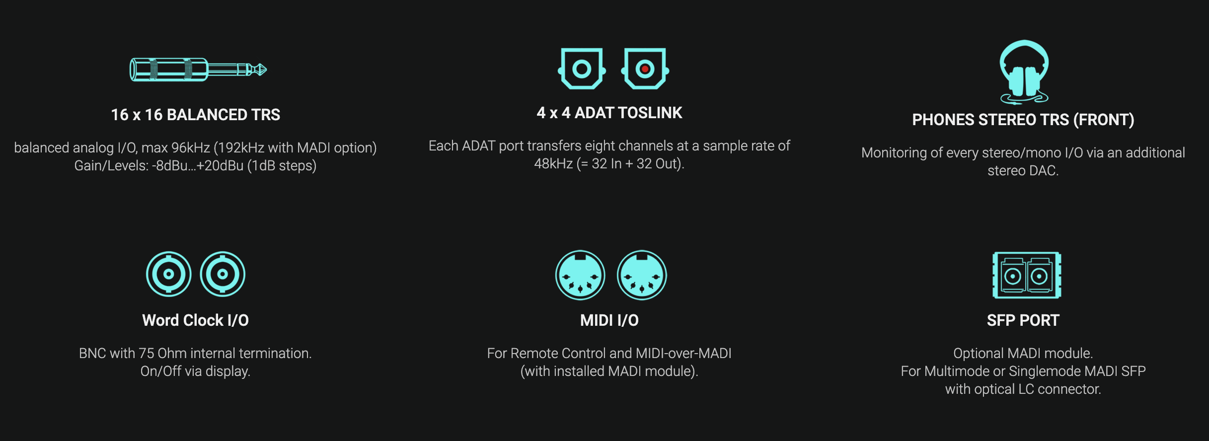 If your studio grows, the PULSE16 grows with it: MADI I/O can be added via a MADI-SFP module together with an upgrade of the firmware. The PULSE16 then becomes a full-fledged PULSE16 MX.