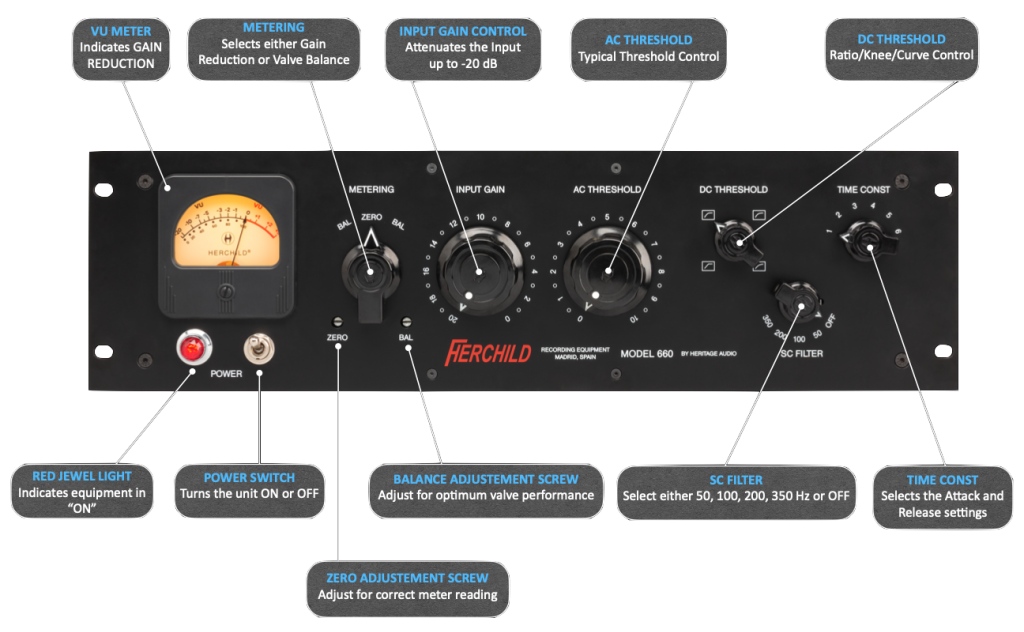 The HERCHILD Model 660 is a Tube-based Variable-Mu compressor that faithfully reproduces the design and exact components used in the original. Stuffed full of 11 valves and 5 transformers and operating at high voltage a solid, professional result is achieved.
