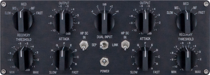 Tweekanaals Tube Limiter/Compressor met Detented Rotary Switches en True Variable Gain