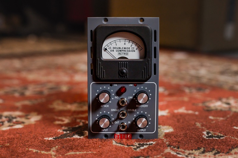 The Retro Instruments DOUBLEWIDE II is a single-channel compressor that installs into two slots of a standard 500 series rack yet it requires only 130-milliamps of current—just like the original Retro DOUBLEWIDE compressor. Also retained from the original are the gray painted front panel, high-quality US-made Simpson gain- reduction meter, and hand wiring throughout (no troublesome ribbon cables). DOUBLEWIDE II’s excellent build-quality is apparent starting with the American-made PC board and extends to the durable and attractive stainless steel case and, don’t forget, Retro only uses Cinemag’s highest-quality input and output transformers for authentic tone and weight plus the complete freedom from external interference and noise. During initial user testing and comparison, the DOUBLEWIDE II immediately exceeded all expectations with increased flexibility and control that many original DOUBLEWIDE users have demanded. With both faster attack and release (recovery) times now possible, the DOUBLEWIDE II excels at energizing vocal tracks as well as controlling bass, guitars and drum tracks in an elegant and transparent way or go extreme and radical—or dial in anywhere in between!