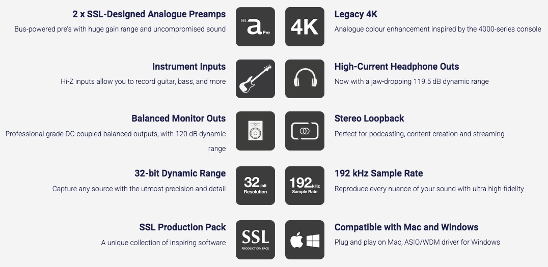 the SSL 2 MKII is built around Next-Gen 32-bit 192 kHz Converters.