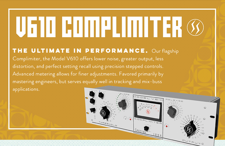 Spectra’s flagship Complimiter, the Model V610 offers lower noise, greater output, less distortion, and perfect setting recall using precision stepped controls. Advanced metering allows for finer adjustments. Favored primarily by mastering engineers, but serves equally well in tracking and mix-buss applications.