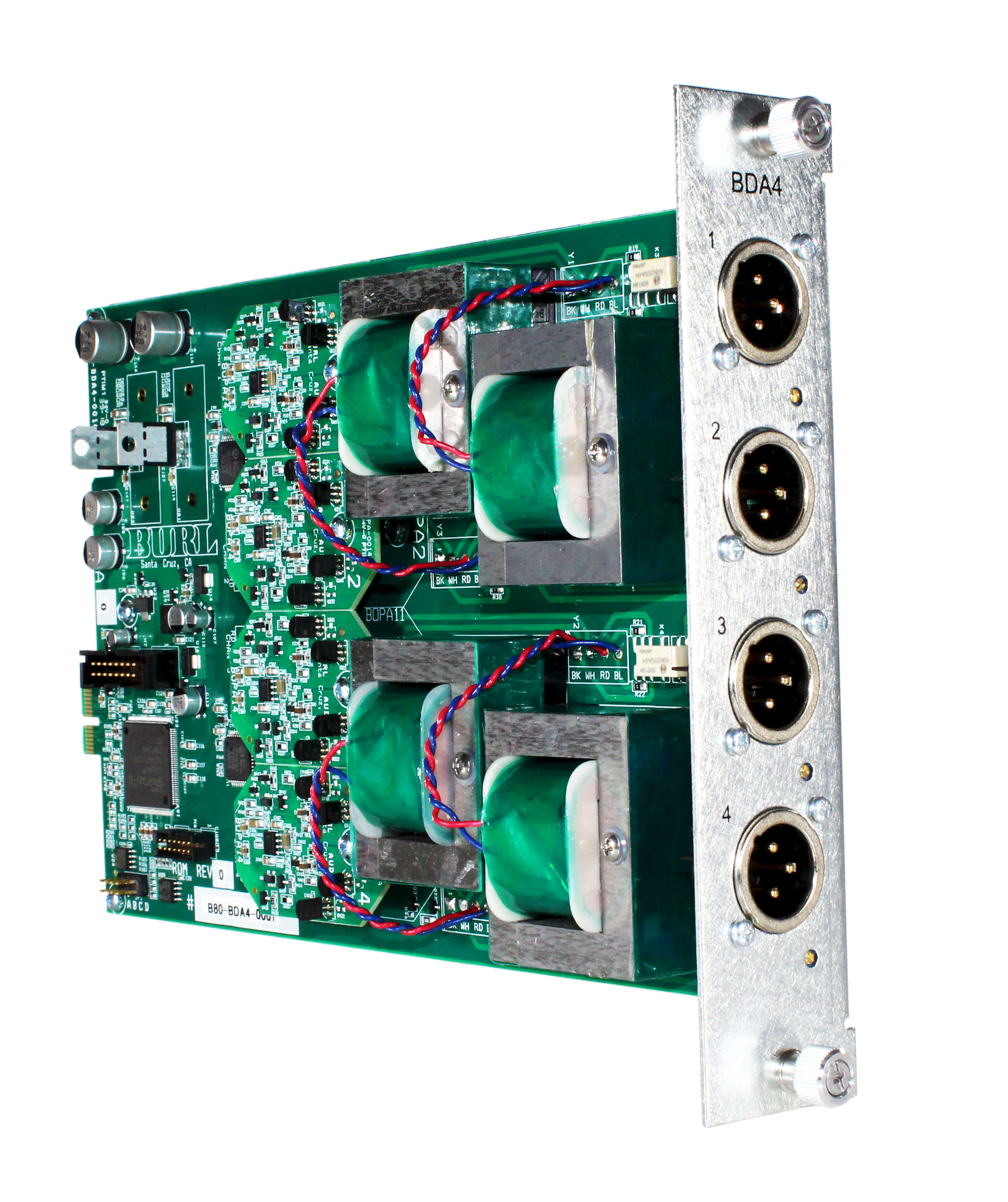 The BDA4, transformer coupled, 4-channel digital-to-analog converter Daughter Card for the B80 and B16 MOTHERSHIP is the result of over 25 years of R&D experience in pro audio digital and analog design. Following on the success of the B2 BOMBER DAC and the BDA8 for the MOTHERSHIP, the BDA4 utilizes the newly developed BOPA14 with BURL Audio’s NextGen Analog. The BOPA14 is followed by the renowned BX5 output transformer used in the B32 VANCOUVER MIX BUS.