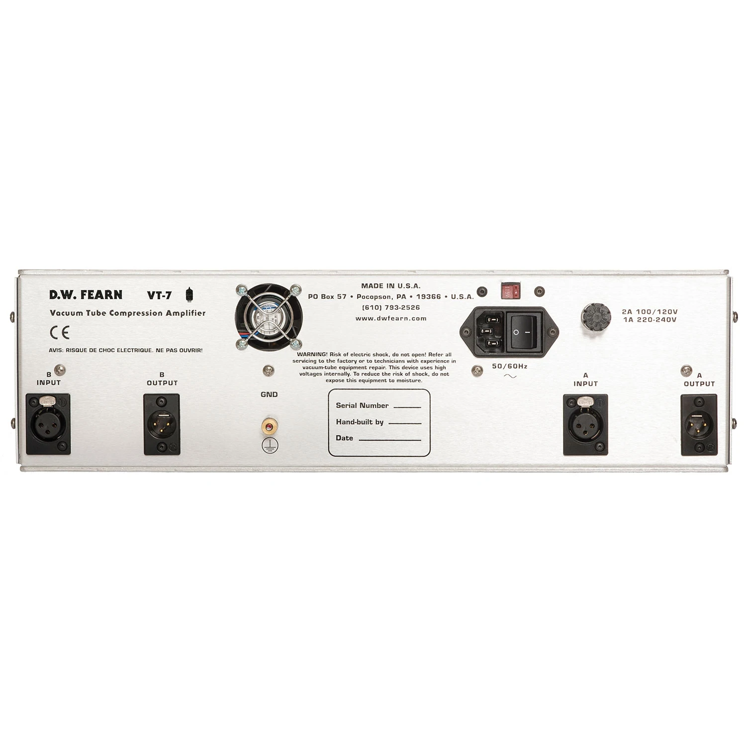 Ideal for tracking, mixing and mastering, the VT-7 features an all Class-A vacuum tube audio path, like all D.W. Fearn products. The gain reduction elements utilize circuitry that duplicates the sound and characteristics of the finest classic vacuum tube compressors, without depending on esoteric tubes that are no longer manufactured, while the Pulse Width Modulation (PWM) control circuitry is modern solid-state analog.