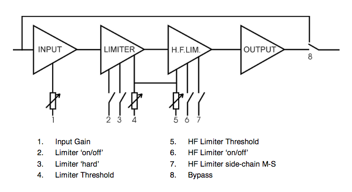 High Frequency Limiting is primarily intended for use as a de-esser, reducing unattractive high frequencies. Part of the high frequency limiter circuit is also used to reduce distortion from the wide- band limiter.