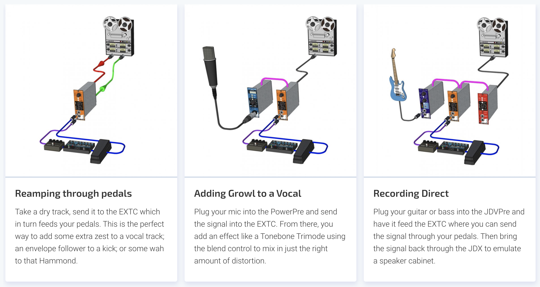The Radial EXTC is a unique 500 series module that allows you to connect guitar pedals to the inputs and outputs of pro audio equipment, providing the ability to incorporate effects pedals into your mix in new and creative ways.
